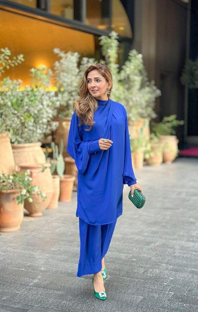 Product Details : Color :Blue Fabric :Signature Crepe Work :Plane Pack Contains :1 Top::1 Pant